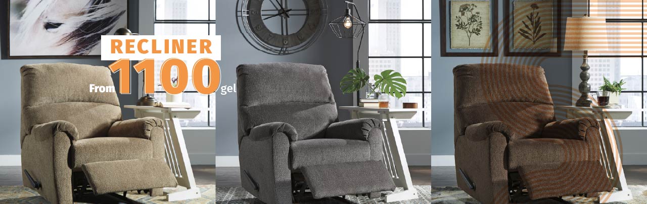 Ashley HomeStore’s recliners are designed to give your relaxation a new meaning. After a long day, you can feel comfortable, create a cozy environment, and enjoy your favorite movie, book, or simply some quiet time. In our collection, you’ll find models in different sizes, colors, and fabrics, making it easy to choose the armchair that best fits your space and style.