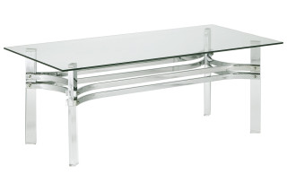 If you long for more transparency, you’re sure to love the Braddoni coffee table. Pairing a clear glass tabletop with see-through acrylic legs, it’s a mastery in minimalism. Chrome-tone stretcher takes the contemporary vibe to the max.