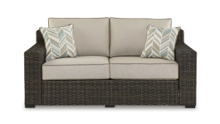 The Coastline Bay sofa with cushion offers all the high-end design, plush comfort and durability you could ask for, and then some. Its all-weather, rust-proof aluminum frame provides the easy-breezy wicker look you love without the high maintenance. Rest assured, the high-performing Nuvella® fabric covering the cushions and throw pillows is made to stand up to the elements.