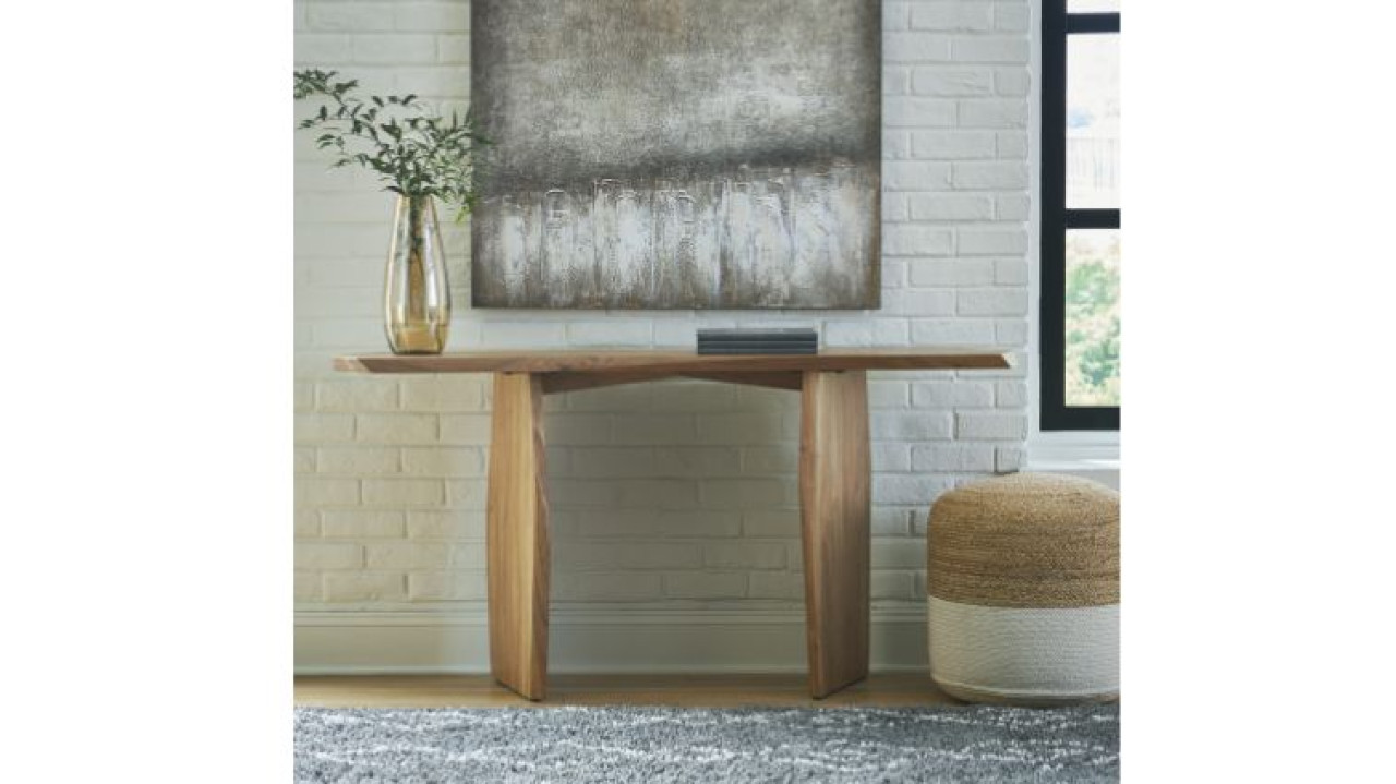 modern style console made from a combination of solid wood and acacia wood The design is presented in dark color.