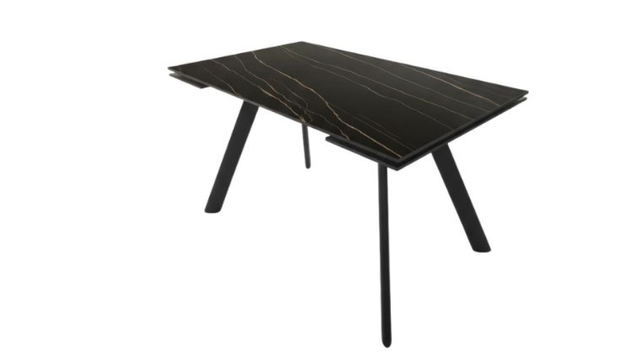 A ceramic surface dining table that resists moisture, does not leave stains, and is not damaged during daily use of dishes. The table legs are made of iron. The table has an extendable function.