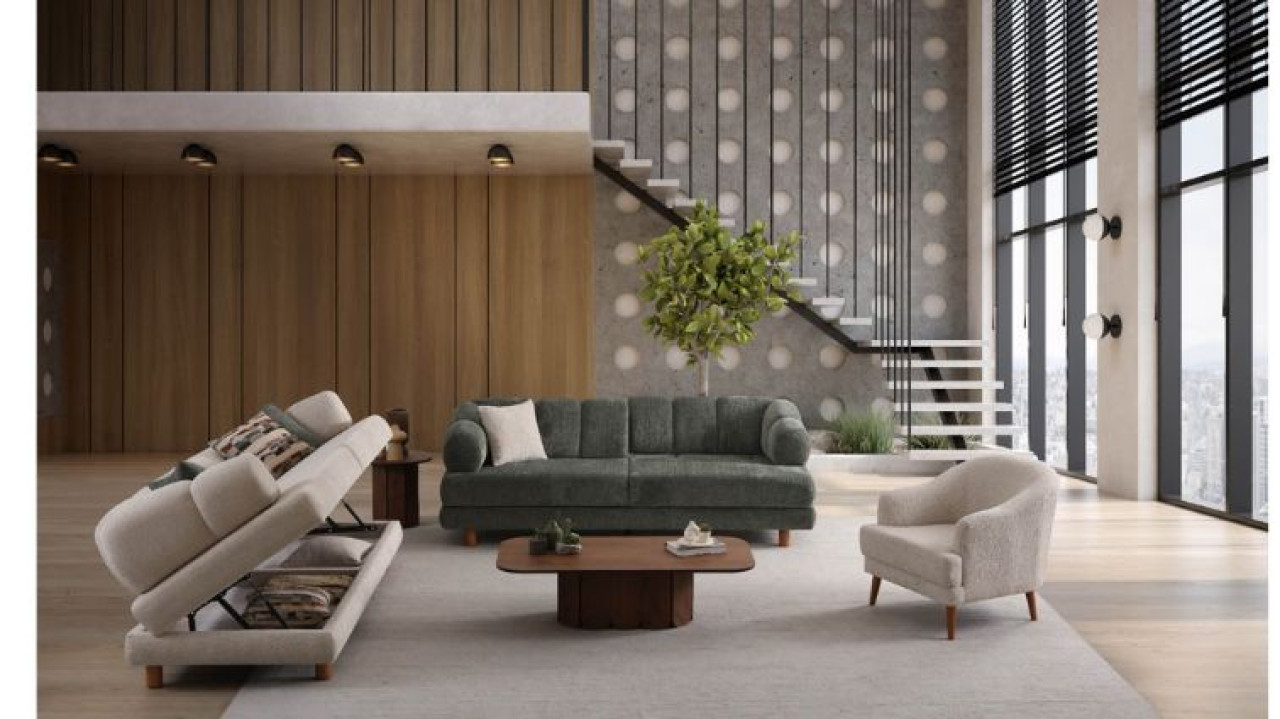 LION - დივანი ,თანამედროვე სტილი თქვენი სახლის ინტერიერში, ქსოვილი დაფარულია მჭიდროდ ნაქსოვი პოლიესტერით.დიზაინი წარმოდგენილია კრემისფერ ფერში