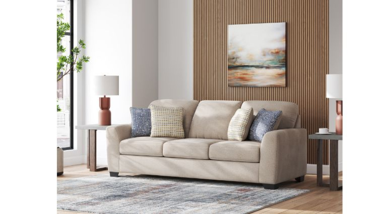 სამ ადგილიანი დივანი ,თანამედროვე სტილი თქვენი სახლის ინტერიერში, ქსოვილი დაფარულია მჭიდროდ ნაქსოვი პოლიესტერით.დიზაინი წარმოდგენილია ღია ფერში