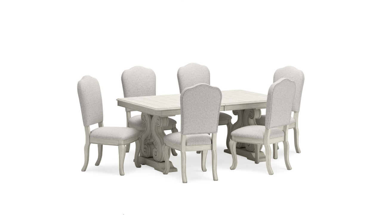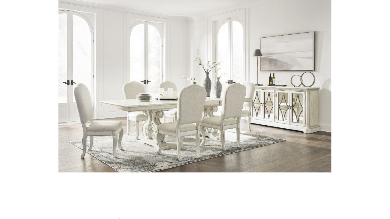 Arlendyne -ის სასადილო ოთახის მაგიდა წარმოდგენილია ვინტაჟური სტილითა და დახვეწილი დიზაინით. განსაკუთრებით გამოირჩევა ორი ფერის ტონალობით. მაგიდის მუქი ნაცრისფერი ფეხები და მუქი ყავისფერი ზედაპირი გაფორმებულია ე.წ მსუბუქი “ფხაჭების” ტექნოლოგიით. მთლიანი კონსტრუქცია დამზადებულია ტექნიკური ხის მასალისგან. გაშლის შემთხვევაში იტევს 9 პერსონას.