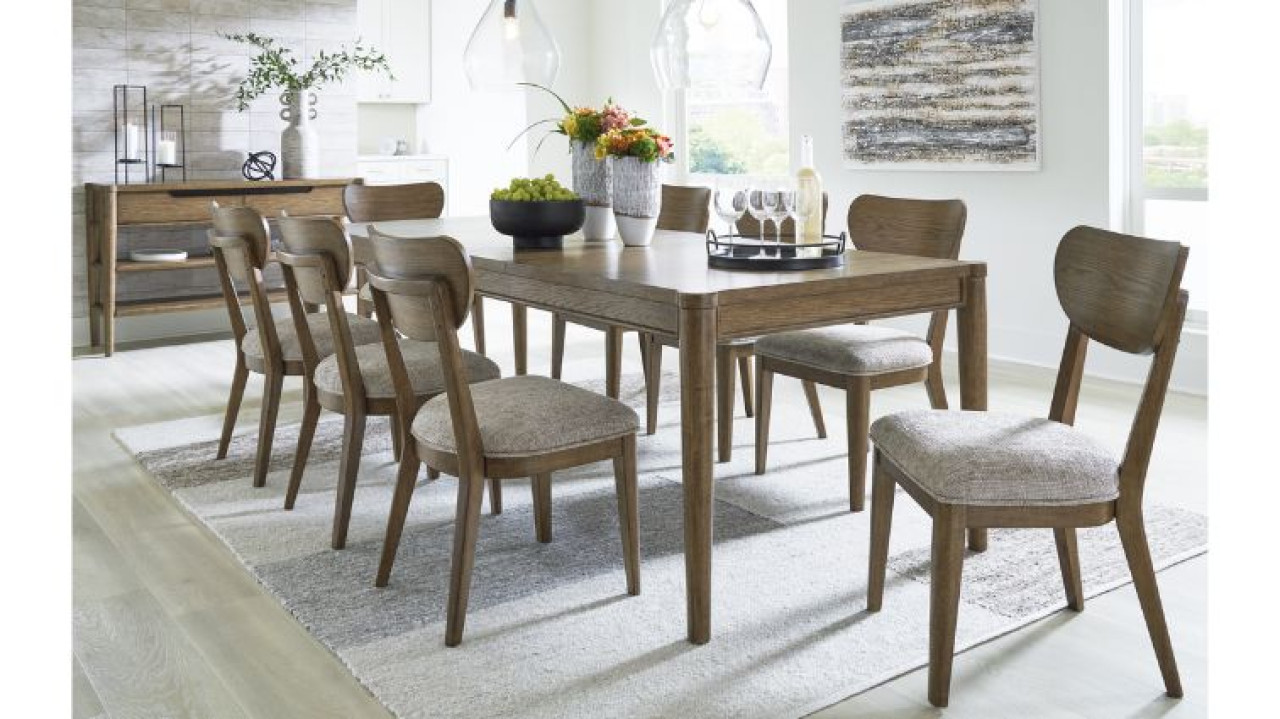 Roanhowe -ის სასადილო ოთახის, მართკუთხა ფორმის გასაშლელი მაგიდა წარმოდგენილია ვინტაჟურ სტილსა და ორი ფერის ტონალობაში. მთლიანი კონსტრუქცია დამზადებულია მასიური ხისა და ტექნიკური ხის კომბინაციით, აქვს ხის ფეხები . გათვლილია 10 პერსონას.