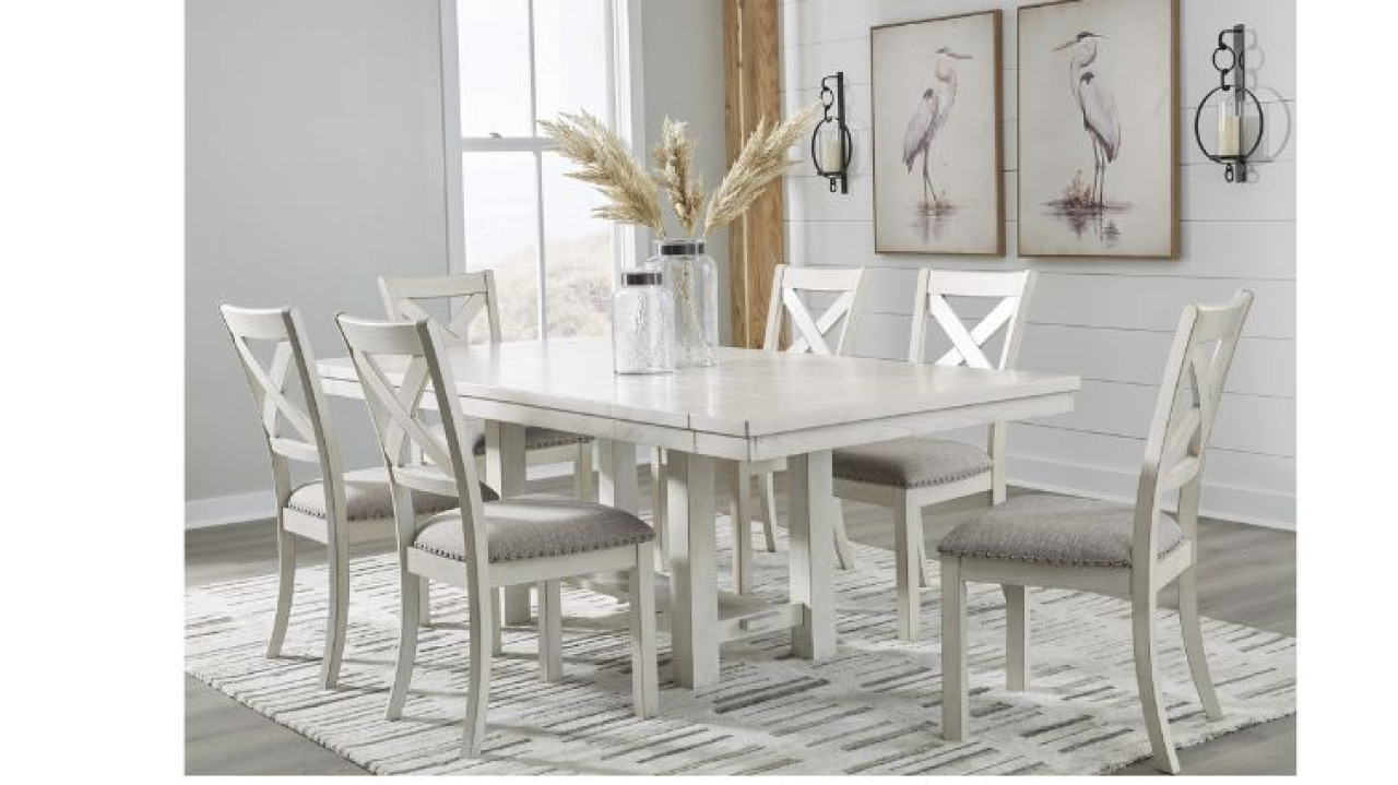 Robbinsdale სასადილო ოთახის მაგიდა წარმოდგენილია თანამედროვე დიზაინისა და კლასიკური ელემენტების შერწყმით,დიზაინი წარმოდგენილია ღია ფერში,დამზადებული მასიური ხის და აკაციის ხის ანათალის კომბინაციით