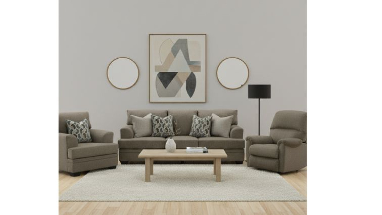 კომპლექტში: სამ ადგილიანი,ერთ ნახევრიანი სავარძელი, მექანიზმიანი სავარძელი