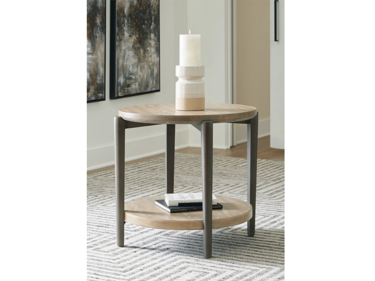 ჟურნალის მაგიდა, თანამედროვე ინტერიერისთვის იდეალური ვარიანტია. მუხის ხის ანათალი, მარტივი, მომრგვალებული ფორმა ელეგანტურ იერს სძენს
