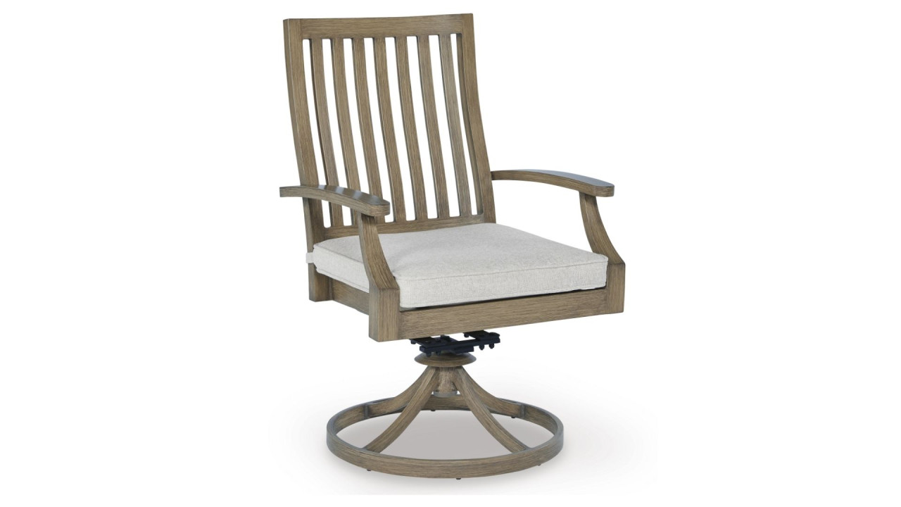 თანამედროვე დიზაინის სკამი. ელეგანტურად ნაქსოვ დიზაინსა და ნეიტრალურ ფერში ეფექტურად აერთიანებს დახვეწილ იერსა და გამძლეობას. ზაფხულის ქარიან დილას და ზამთრის ცივ ღამეებს უფრო კომფორტულს გახდის Nuvella+ მაღალი ხარისხის ქსოვილის საშუალებით, რომელიც ფარავს სავარძლის ბალიშს.