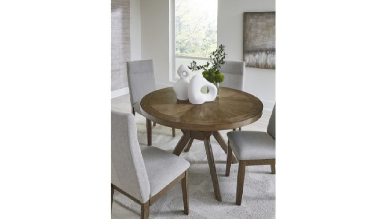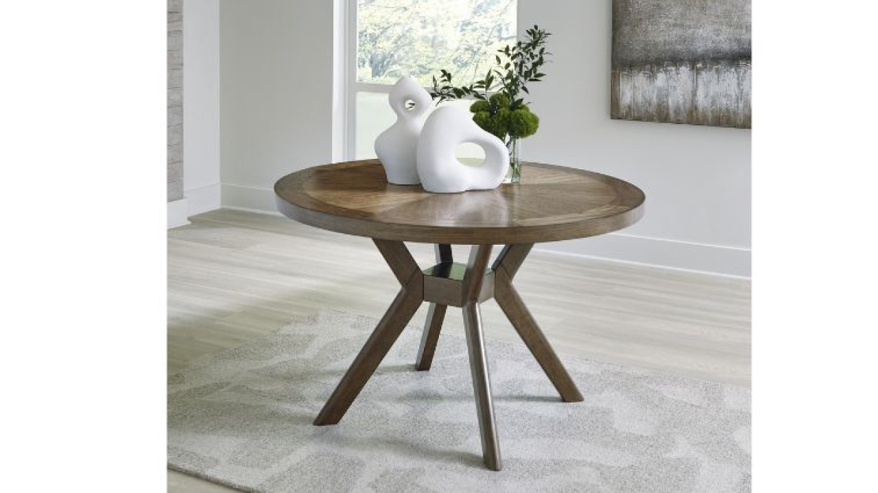 Roanhowe სასადილო მაგიდა რომელიც არის ტექნიკური ხის და აკაციის ხის ანათალის კომბინაციით,დიზაინი წარმოდგენილია თანამედროვე სტილში