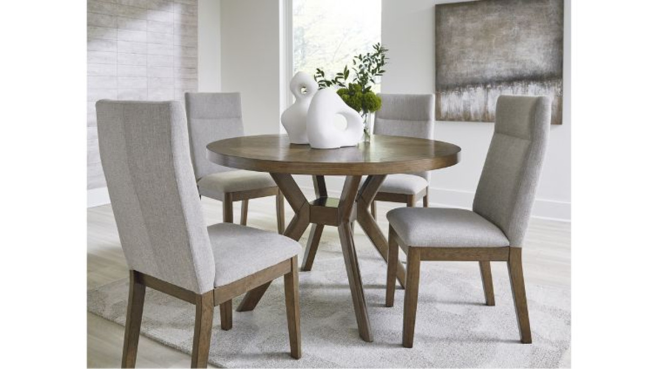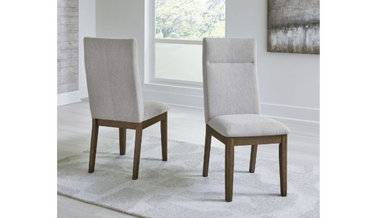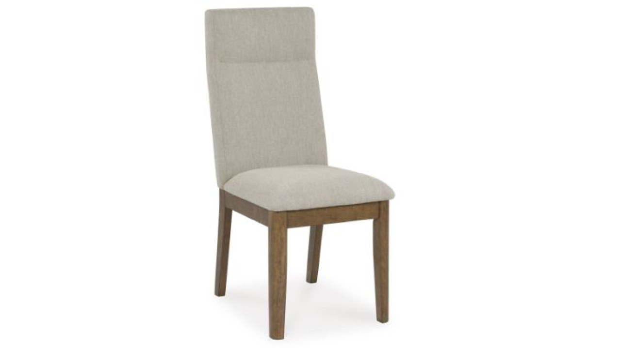 ვინტაჟური სტილის სასადილო სკამი. დამზადებულია ღია ფერის მასიური ხისა და ტექნიკური ხის კომბინაციით. დასაჯდომი ნაწილი შედგება მაღალი ხარისხის ღრუბლისა და ღია ფერის პოლიესტერის ქსოვილისგან.