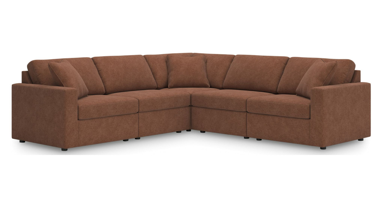 Blending a fresh, clean aesthetic with cloud-like comfort that’s impossible to resist, the Modmax sectional sets the scene for living the dream. Whether your look is warm and cozy modern farmhouse or cool, crisp and contemporary, this masterfully crafted modular sectional tantalizes with plush feather-fiber blend reversible cushions and a linen-like fabric that’s a breath of fresh air. Slim track arms and structural bolster pillows enhance the experience.