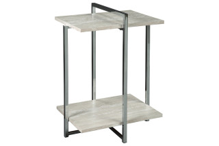 Contemporary style gets a modern attitude in the Bodalli side table. The replicated travertine stone shelf offers chic sophistication, while the box design of the metal frame creates open space to offer the illusion of more room.
