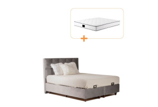 Kuante -სათავსოიანი საწოლი რომელიც არის ბარხატის ქსოვილით დაფარული,